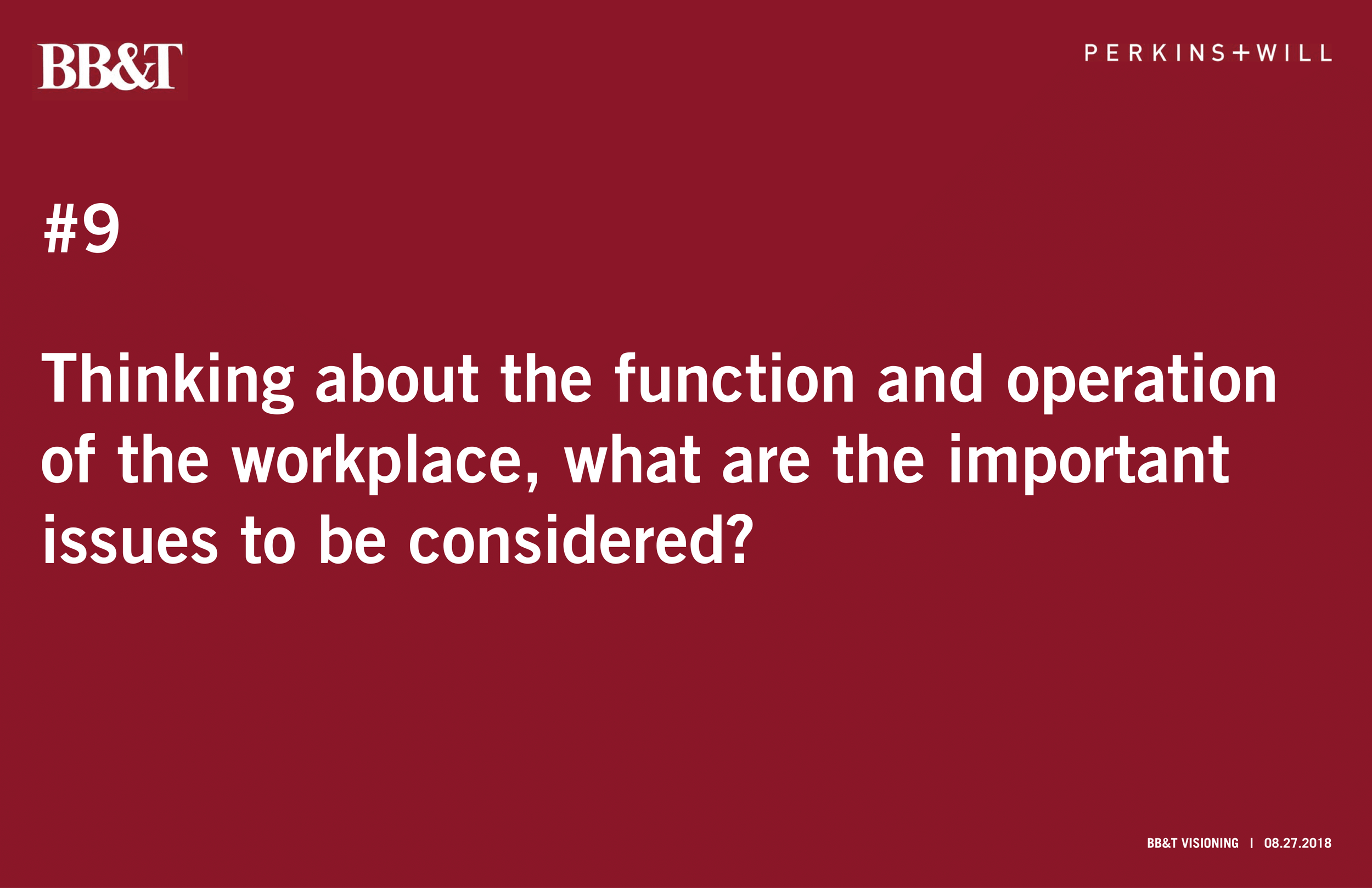 Aligning physical space with brand identity: How could the workplace reflect BB&T’s evolving culture, projecting an image that was as client-facing, innovative, and people-centered as its strategic goals?